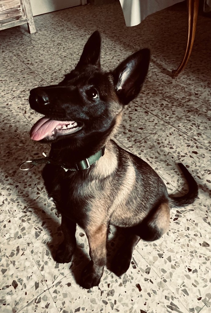 Malinoise de 3 mois est entrain de comprendre que ça famille acquis de plus en plus les codes pour lui offrir un cadre de vie et d’apprentissage de plus en plus précis.